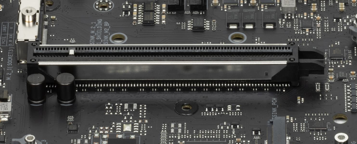 Выше я уже показал, что слот M.2_1 делит ресурсы с первым слотом PCIe x16_1, ведь у процессора всего 16 линий PCIe 5.0. А вот M.2_2 получает привычные и неделимые ни с чем 4 линии PCIe 4.0.