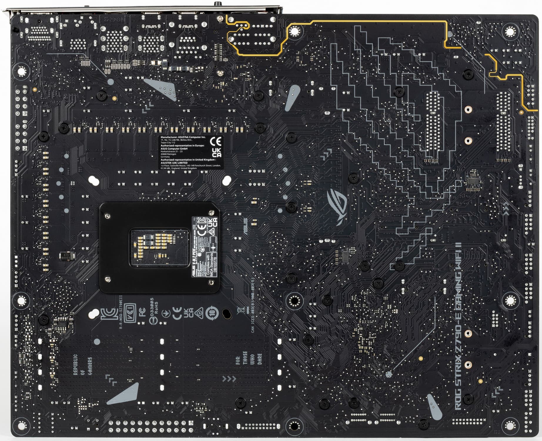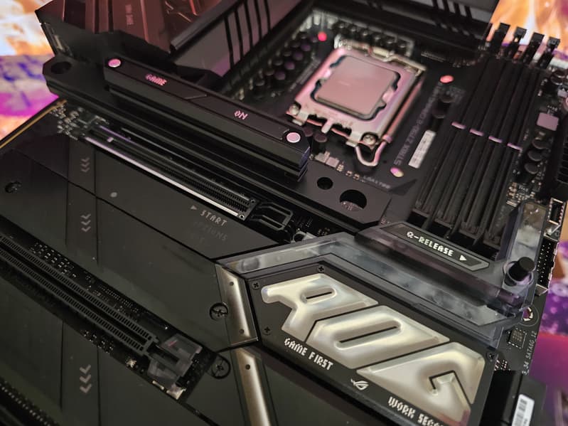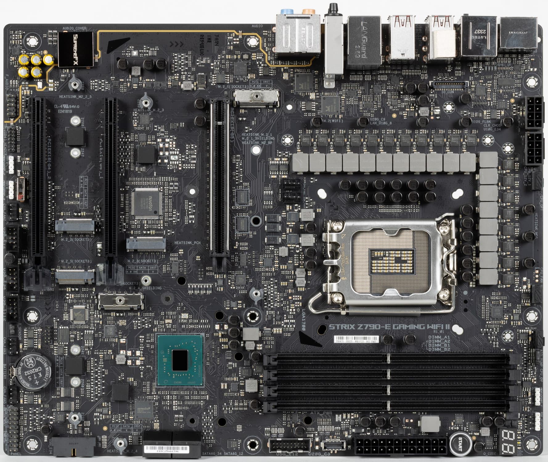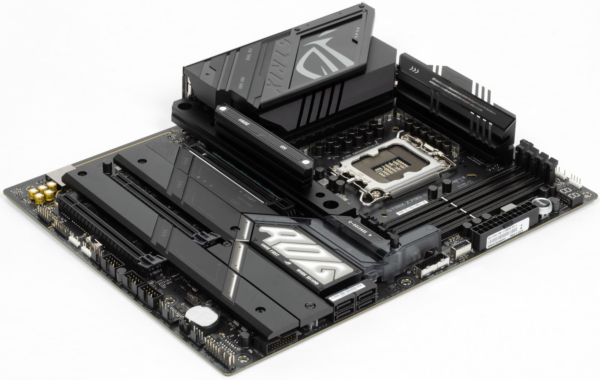 Переходим к самой материнской плате Asus ROG Strix Z790-E Gaming WiFi II, которая относится к топовому суббренду ROG, внутри которого есть еще свое деление: самые флагманские платы относятся к линейке Maximus, а попроще – к Strix: поэтому перед нами как бы середнячок, но из топового семейства.