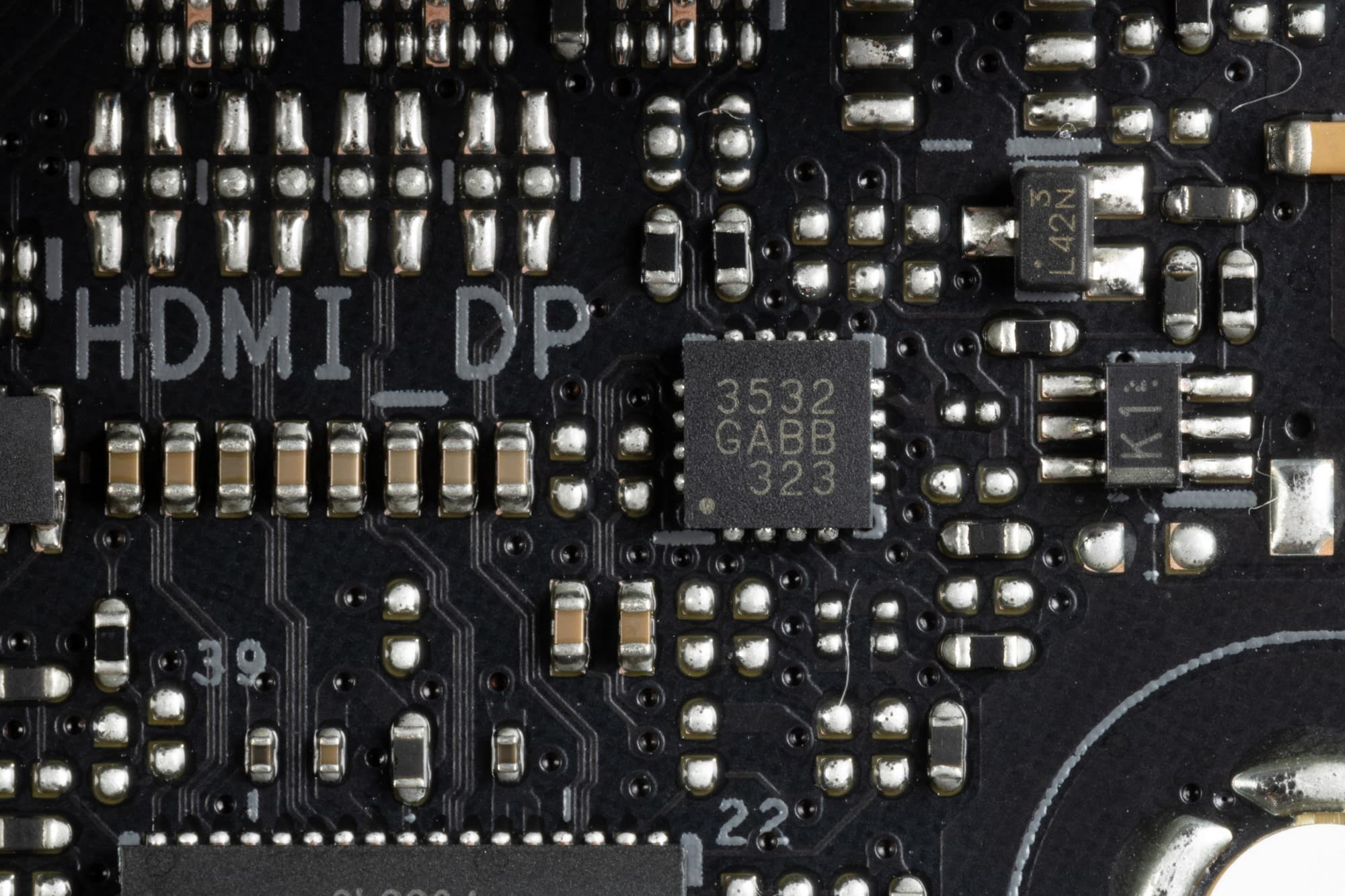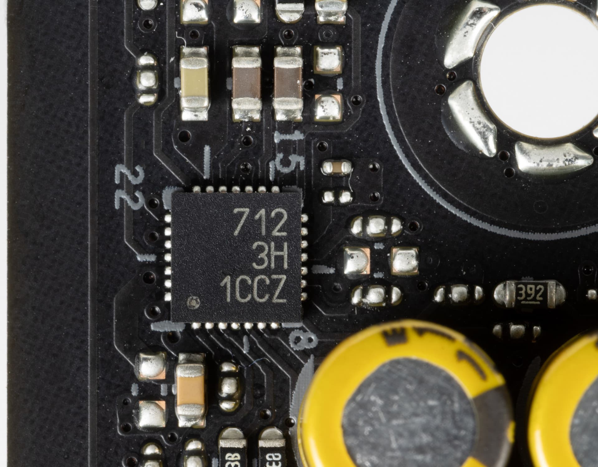 На оборотной стороне практически ничего нет. Текстолит обработан хорошо: во всех точках пайки не только острые концы срезаны, но и все неплохо отшлифовано. Защитной пластины нет.