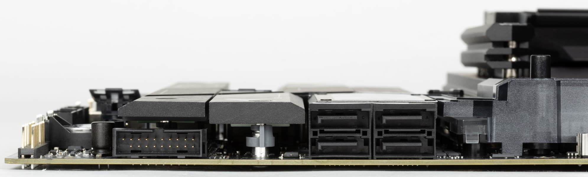 Все M.2 слоты имеют радиаторы. M.2_1, M.2_3 и M.2_4 обладают отдельными радиаторами, когда как остальные слоты M.2_2 и M.2_5 имеют общий радиатор.