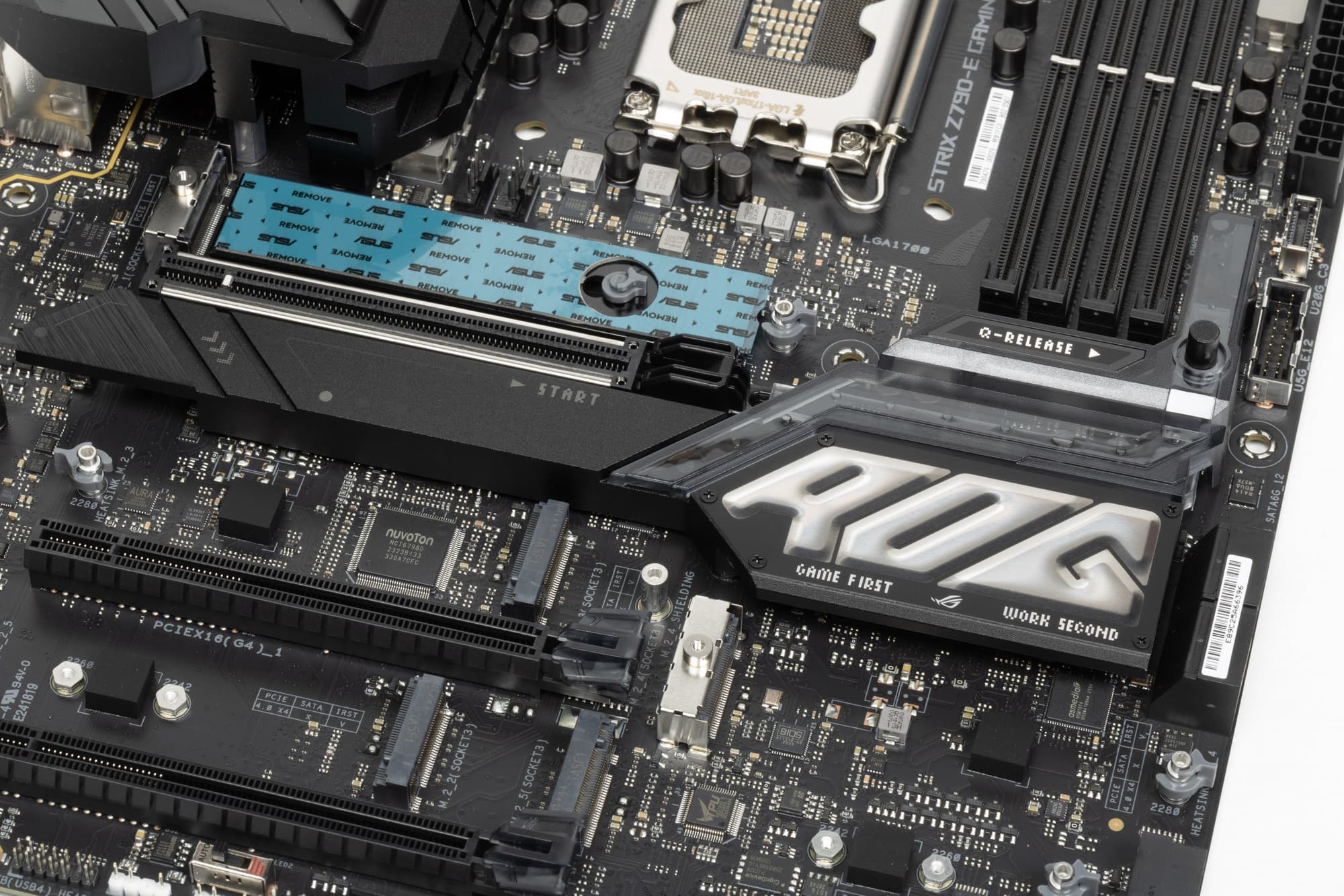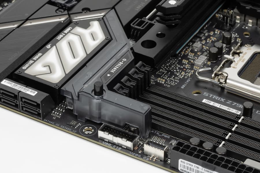 Мы снова видим своего рода удобный рычаг для открытия защелки на первом PCIe x16_1 слоте – Q-Release.