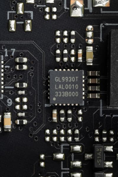 Для нужд SATA имеются усилители (ре-драйверы) сигнала PCIe 3.0 от Genesys Logic.