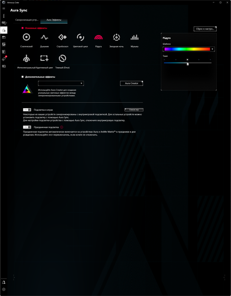 В арсенале платы также есть 4 порта SATA и 8 разъемов для вентиляторов. Система питания процессора очень мощная, она способна обеспечить работу любых совместимых процессоров с приличным запасом на разгон. Плата имеет грамотную систему охлаждения каждого потенциально греющегося элемента, включая накопители в слотах M.2 (термопрокладки для охлаждения накопителей в первом слоте есть с обеих сторон, а также он оснащен усиленным радиатором, способным справиться с нагревом SSD с интерфейсом PCIe 5.0). Сетевые возможности включают быстрый проводной контроллер 2,5 Гбит/с и один самый современный беспроводной с поддержкой Wi-Fi 7/Bluetooth 5.4. В числе плюсов платы можно упомянуть неплохую подсветку, включая широкие возможности для подключения дополнительных RGB-устройств. Отметим и улучшенный аудиокодек Realtek ALC4080.