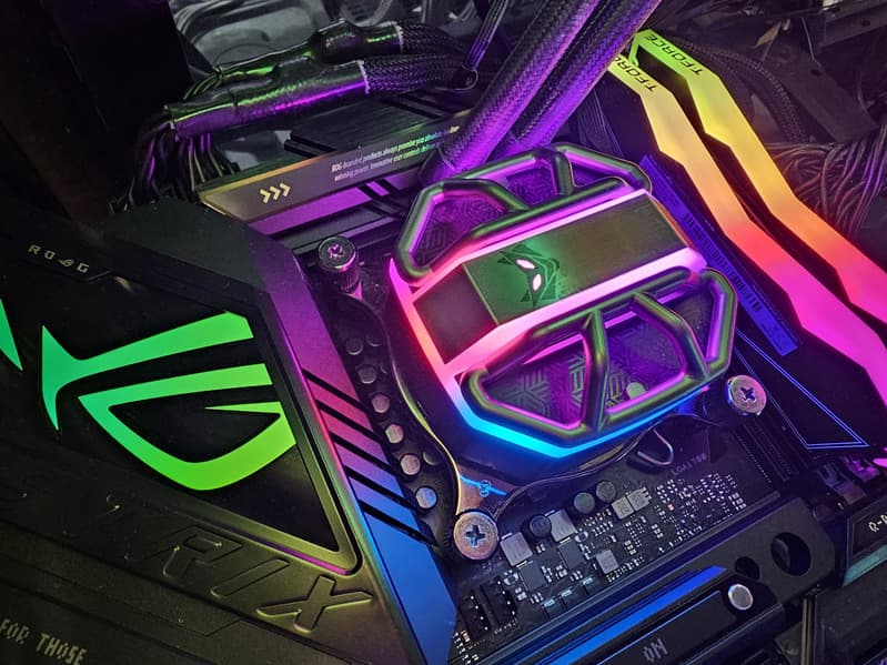 Радиатор VRM, идущий вдоль заднего блока портов, имеет кожух, прикрывающий тот самый блок, оснащенный подсветкой.