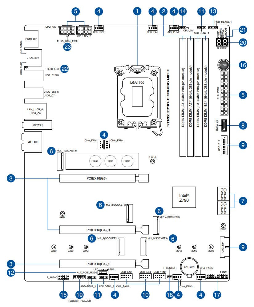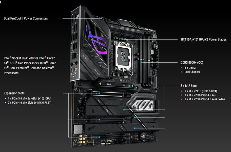 Еще раз надо напомнить, что Asus ROG Strix Z790-E Gaming WiFi II поддерживает процессоры Intel Core 12/13/14-го поколений, выполненные под разъем (сокет) LGA1700.