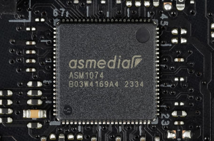- + 1 USB 3.2 Gen1 на обеспечение контроллера ASMedia ASM1074 (USB 3.2 Gen1 хаб)