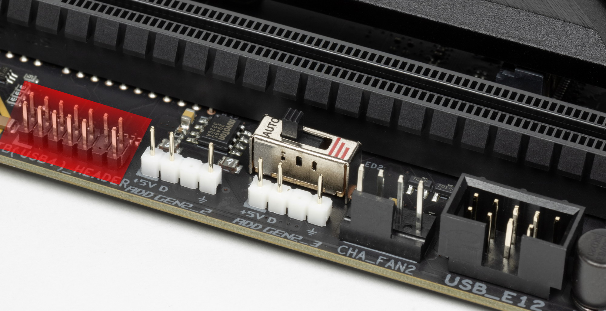 Подчас крайне неудобно дотягиваться до «хвоста» слота, где требуется нажать на защелку для разблокирования карты в слоте: ведь как правило, выше первого слота PCIe имеется M.2 слот с высоким радиатором, и до защелки даже пальцем не дотянуться.