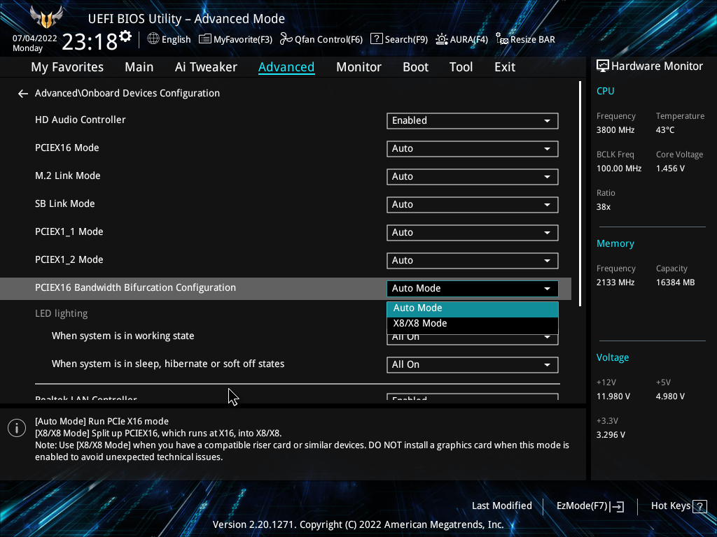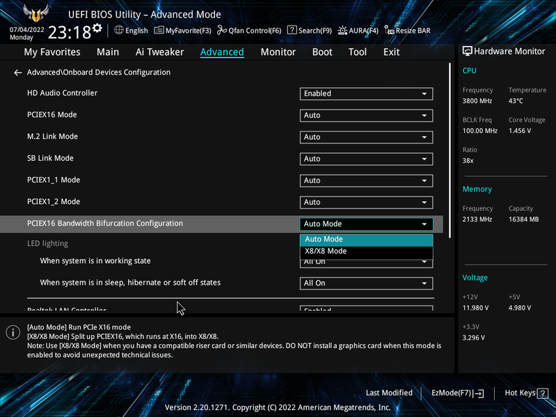 Теперь посмотрим выше на то, как работают процессоры в данной конфигурации. У CPU всего 20 линий PCIe, 4 из них версии PCIe 4.0 (в данном случае реализована версия 3.0) отведены на порт М.2 (M2_1). Оставшиеся 16 линий PCIe 4.0 (в данном случае 3.0) идут на единственный слот PCIe x16_1, поэтому вариантов переключений нет, как и мультиплексоров для этих целей.