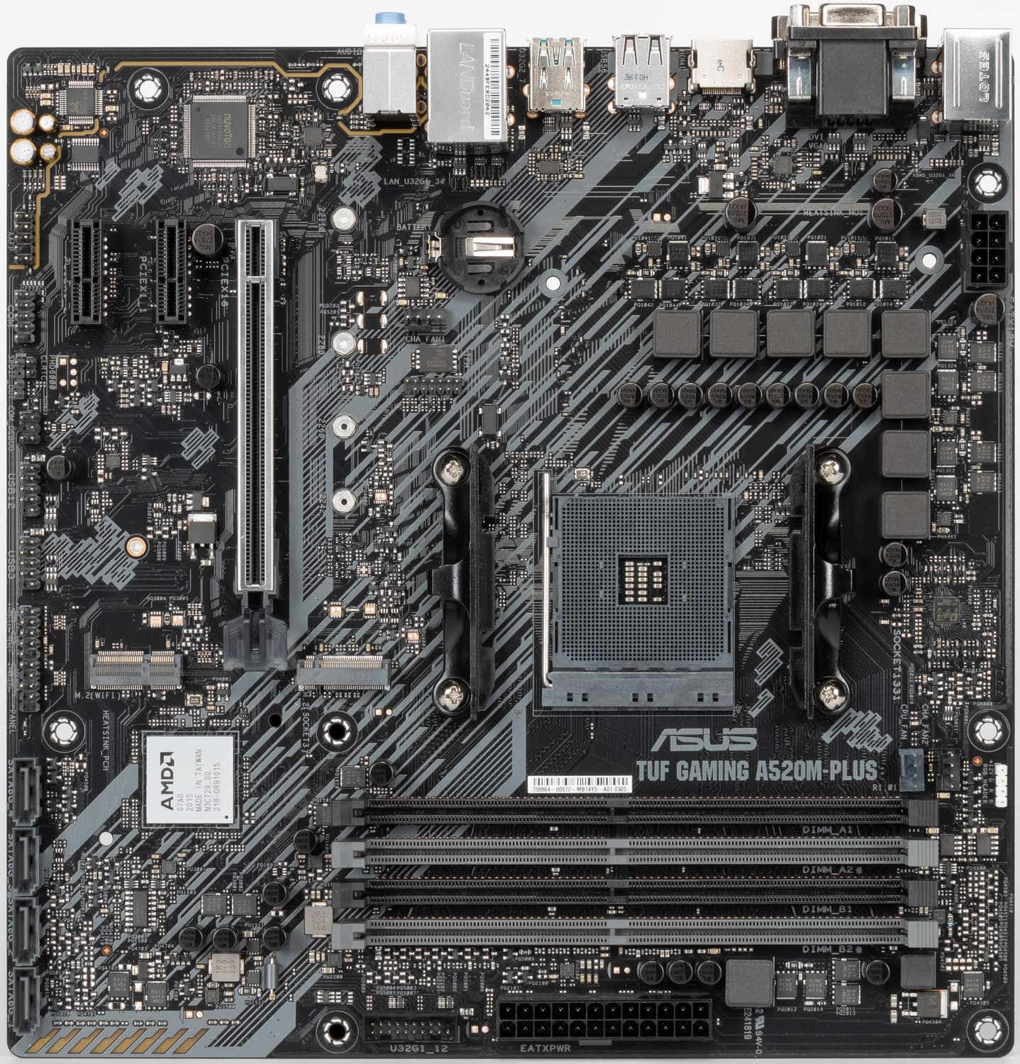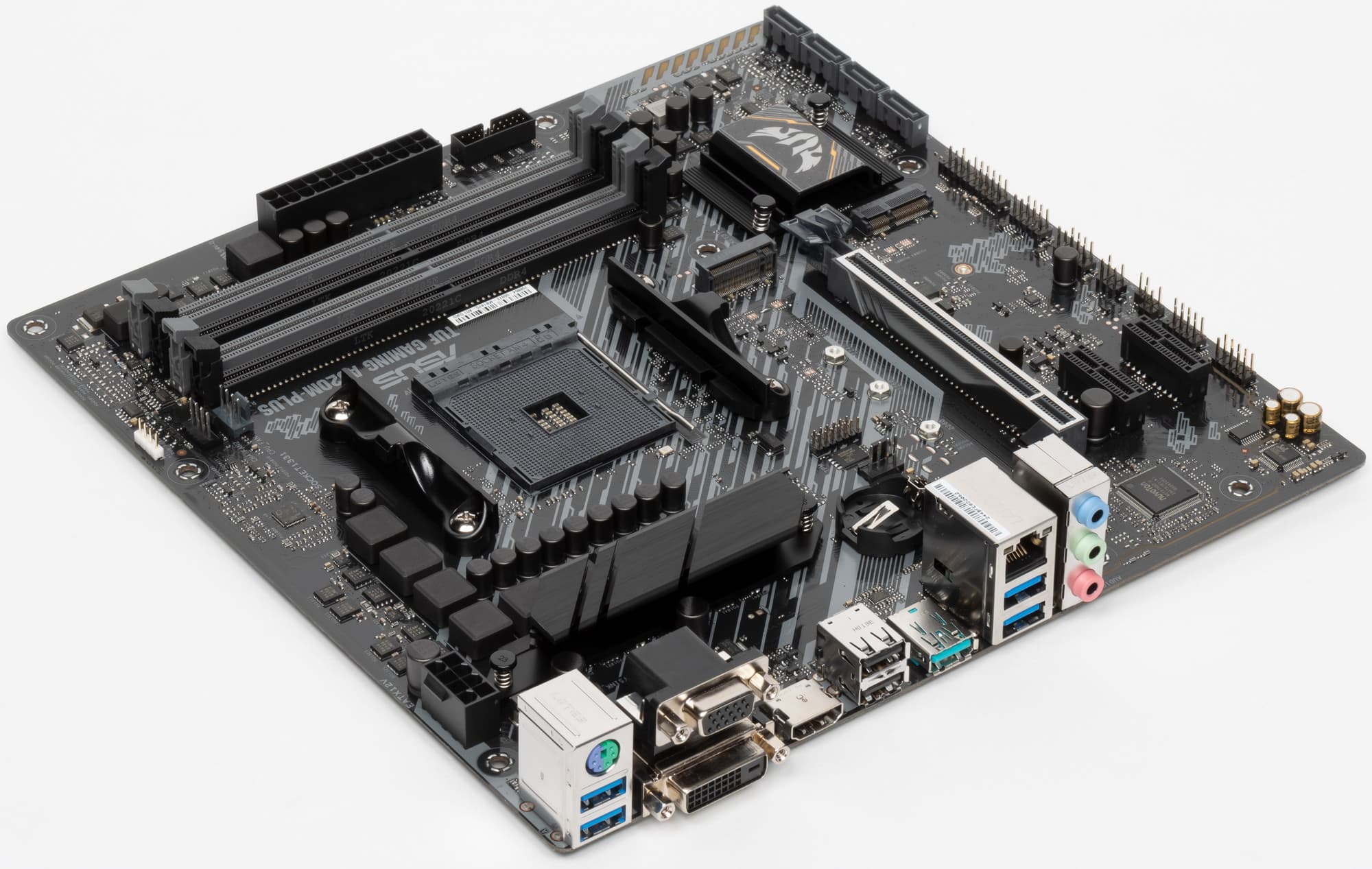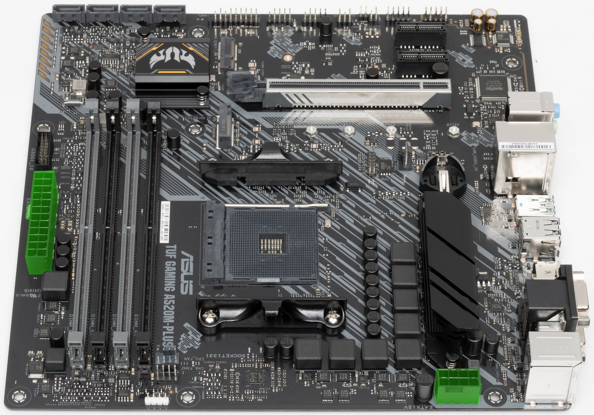 У нас сегодня Asus TUF Gaming A520M-Plus. Серия TUF Gaming, что следует уже из названия, относится к игровым, однако в отличие от навороченной серии ROG Strix (все мы знаем, что ROG — Republic Of Gamers, то есть тоже игровое направление) платы из TUF Gaming не имеют особых «изюминок» или «фенечек» для сверхразгона, подсветка минимальна или ее вообще нет, в целом дизайн по-проще, ну и серия просто означает: «играй много, тяжело, хватит тебе обычного режима работы «железа», стабильность гарантирована».