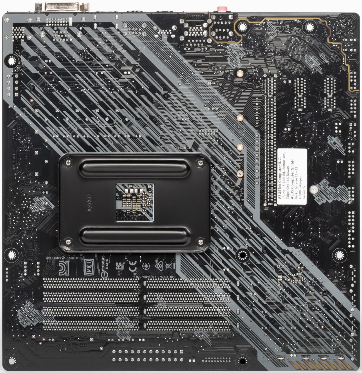 Форм-фактор Mini-ITX имеет размеры 170×170 мм, microATX до 244×244 мм, ATX до 305×244 мм, а E-ATX — до 305×330 мм. Материнская плата Asus TUF Gaming A520M-Plus выполнена в форм-факторе microATX, имеет размеры 244×244 мм, и на ней имеются 8 монтажных отверстий для установки в корпус.