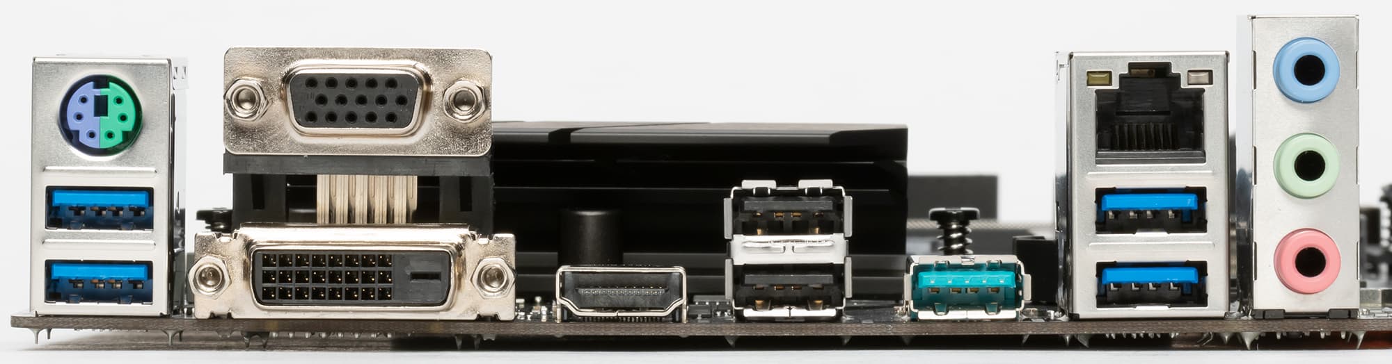 Теперь на очереди USB-порты и прочие вводы-выводы. И начнем с задней панели, куда выведены большинство из них.