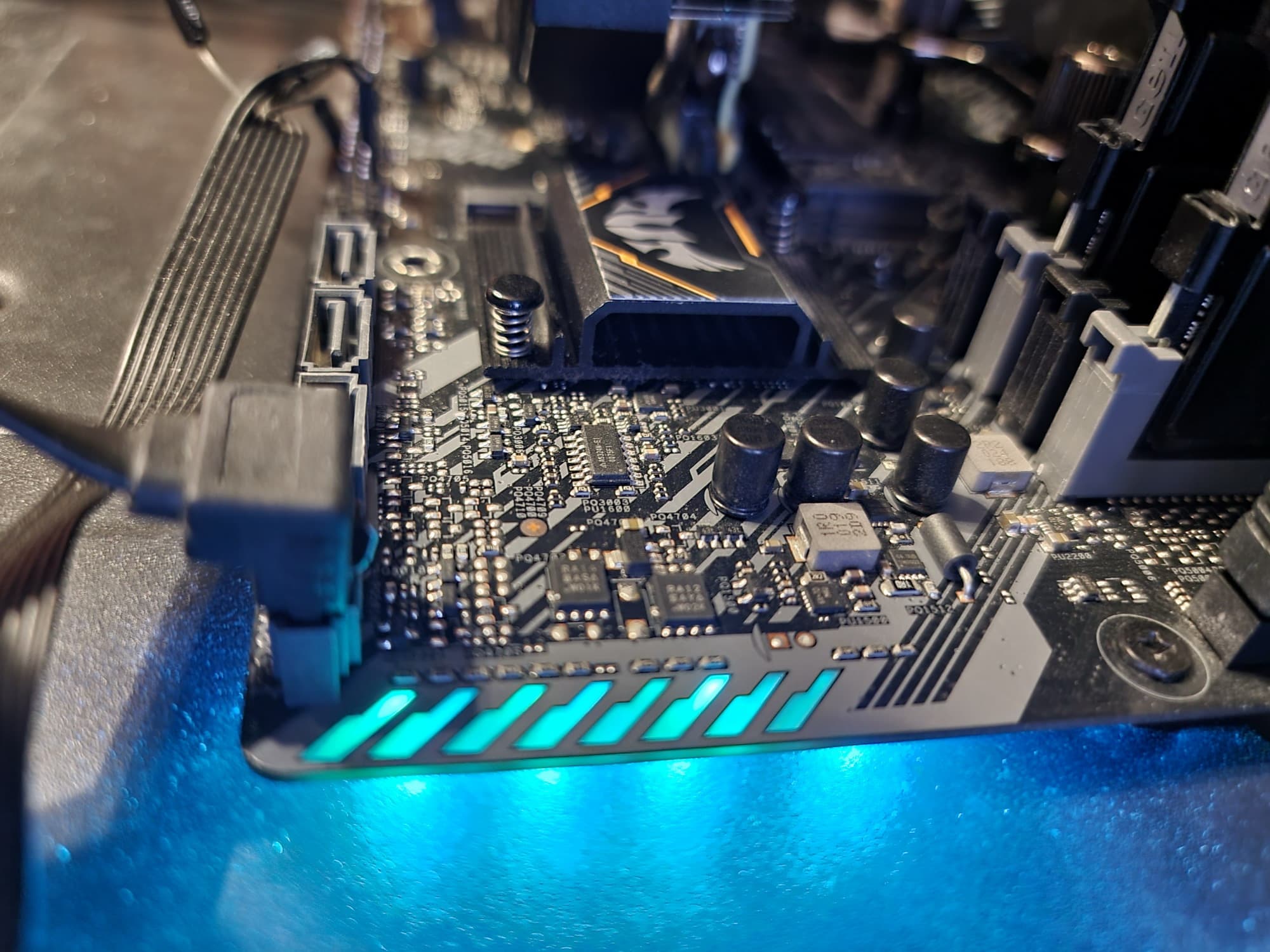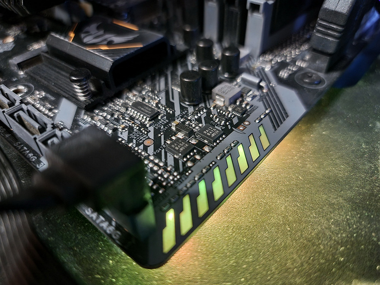 У платы 12 USB-портов, включая 1 USB 3.2 Gen2 и 6 USB 3.2 Gen1. Для установки видеокарты имеется один слот PCIe х16 3.0, также есть два слота PCIe x1. Для накопителей предлагаются 1 слот M.2 (подключен напрямую к процессору линиями PCIe 3.0) и 4 порта SATA. Сетевые возможности включают лишь один проводной контроллер 1 Гбит/с, но имеется слот М.2 для установки отдельно приобретаемого беспроводного контроллера. Подсветка у платы практически отсутствует, но есть 1 разъем RGB для подключения внешних устройств подсветки. В целом всё очень бюджетно.