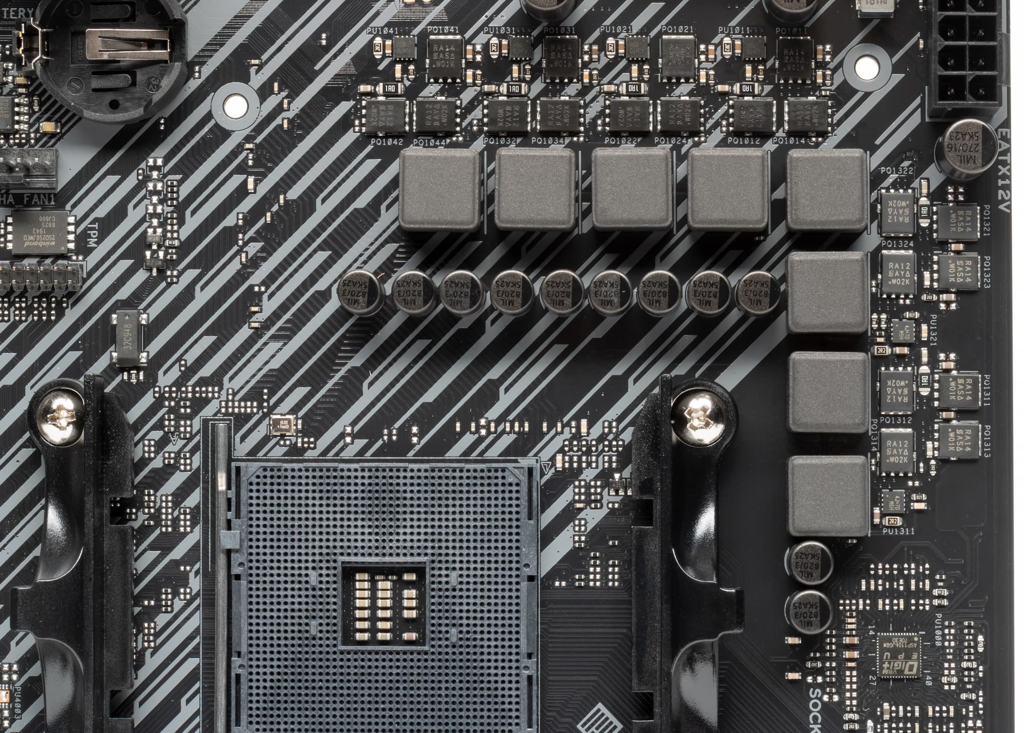 Остальная часть VRM, а также M.2 слот не имеют охлаждения.