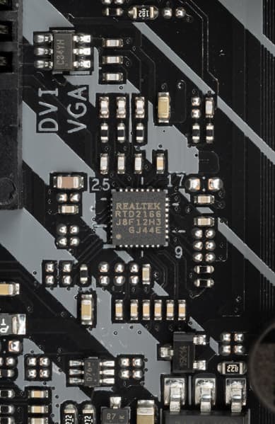 Материнская плата оснащена средствами связи скромно. Имеется Ethernet-контроллер Realtek L8200A, способный работать по стандарту 1,0 Гбит/с.
