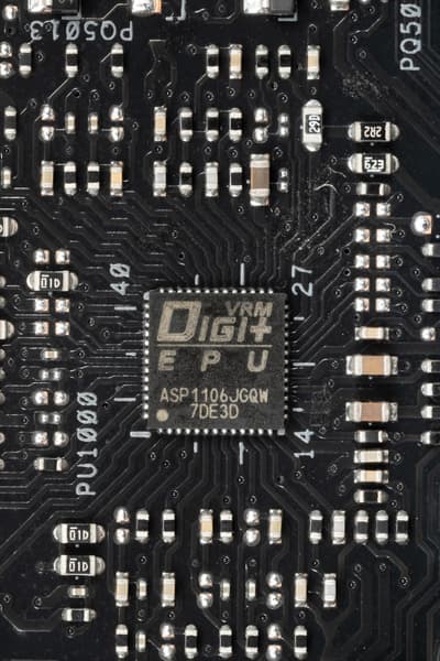 Управляет схемой питания фирменный ШИМ-контроллер Digi+ ASP1106.