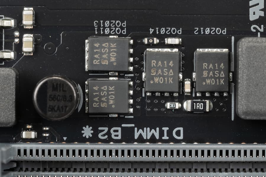 Для установки модулей памяти на плате Asus имеется 4 DIMM-слота (для работы памяти в Dual Channel в случае использования всего 2 модулей их следует устанавливать в А2 и B2, отмеченных серым цветом). Плата поддерживает небуферизованную память DDR4 (non-EСС), а максимальный объем памяти составляет 128 ГБ. Поддерживаются профили XMP.