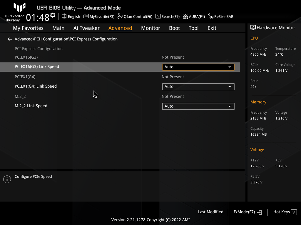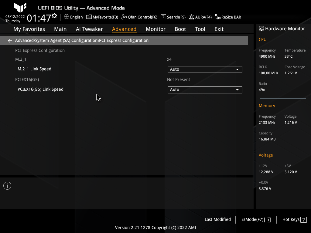 Теперь посмотрим выше на то, как работают процессоры в данной конфигурации. У CPU 12-го поколения всего 20 линий PCIe, 4 из них версии PCIe 4.0 отведены на порт М.2 (M2_1). Оставшиеся 16 линий PCIe 5.0 идут на единственный слот PCIe x16_1, поэтому вариантов переключений нет, как и мультиплексоров для этих целей.