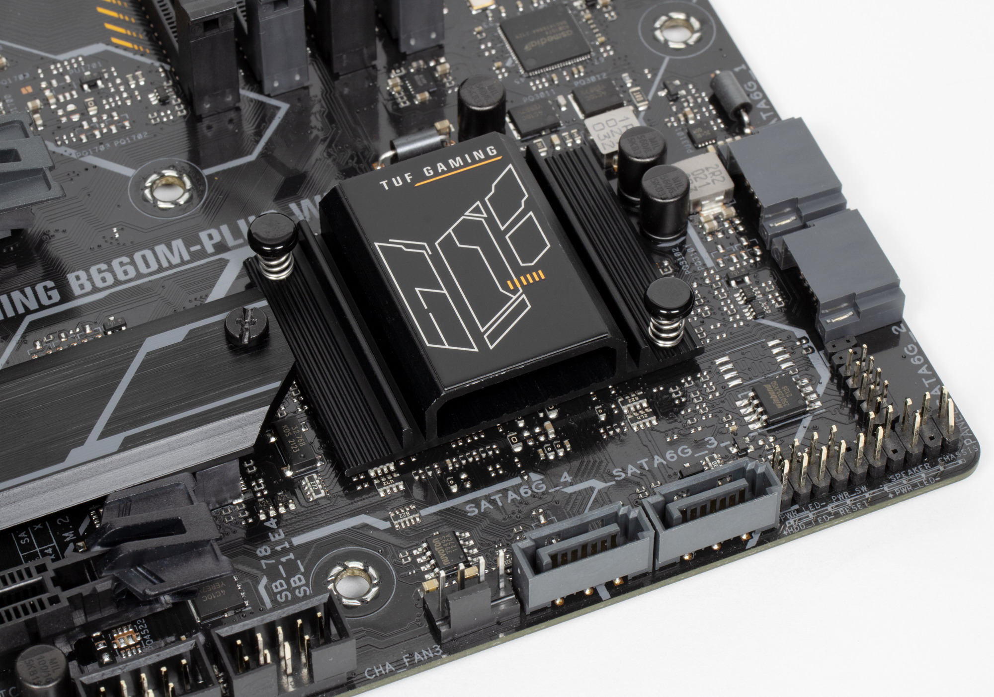 Порты SATA реализованы через чипсет B660 и поддерживают создание RAID. Размещены по схеме 2+2 вдоль разных сторон платы.