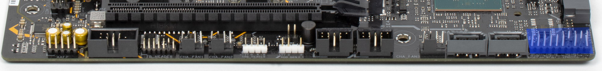 | Прочие внутренние элементы | 24-контактный разъем питания ATX 1 8-контактный разъем питания EPS12V 1 4-контактный разъем питания EPS12V 1 слот M.2 (E-key), занят адаптером беспроводных сетей 1 разъем для подключения порта USB 3.2 Gen1 Type-C 1 разъем для подключения 2 портов USB 3.2 Gen1 2 разъема для подключения 4 портов USB 2.0 6 разъемов для подключения 4-контактных вентиляторов и помп ЖСО 4 разъема для подключения адаптеров подсветки (1 разъем неадресуемой RGB-ленты, 3 разъема адресуемой ARGB-ленты) 1 разъем для подключения адаптера управления с передней панели корпуса 1 разъем COM-порта 1 разъем для устройств Thunderbolt 1 разъем сброса CMOS |