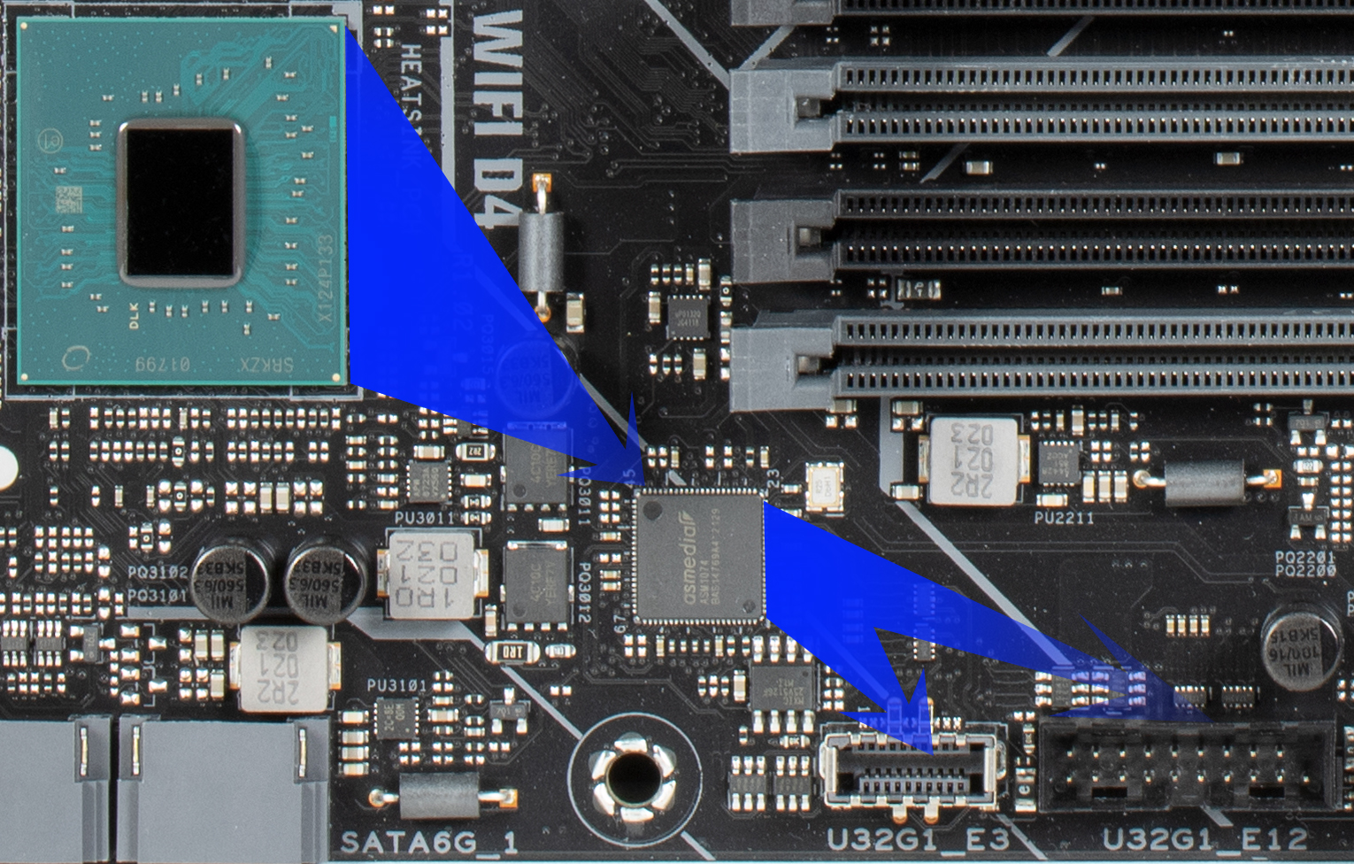 14 линий PCIe оказались занятыми (6 PCIe 4.0 + 8 PCIe 3.0) плюс порты SATA_1/2/3/4, суммарно потрачено 14 HSIO. В данном случае связь с аудиокодеком организована через канал HDA.