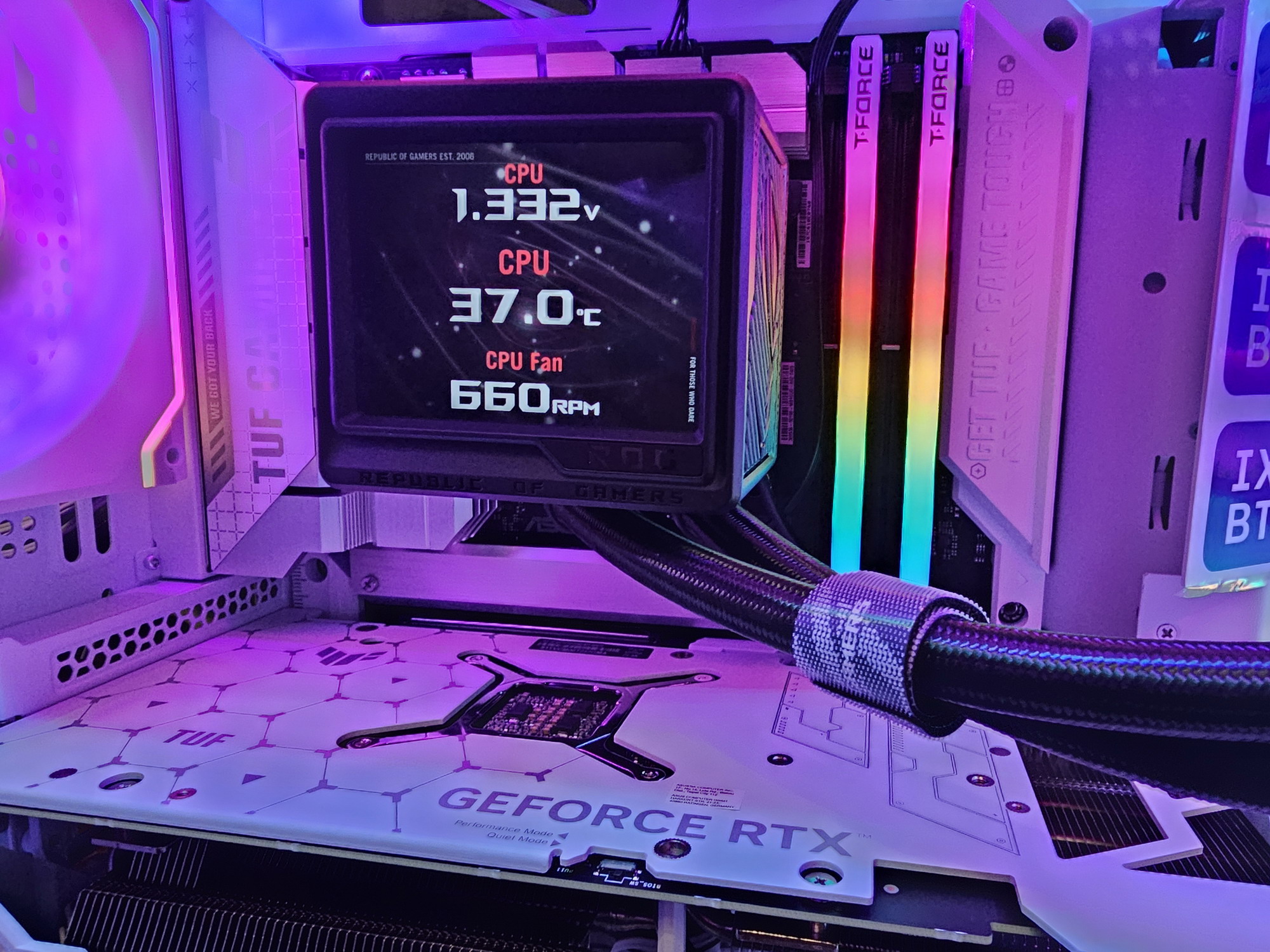 | Прочие внутренние элементы | 24-контактный разъем питания ATX 2 8-контактных разъема питания EPS12V 1 16-контактный разъем питания 12VHPWR 3 8-контактных разъема питания PCIe 1 разъем для подключения порта USB 3.2 Gen2 Type-C 1 разъем для подключения 2 портов USB 3.2 Gen1 2 разъема для подключения 4 портов USB 2.0 7 разъемов для подключения 4-контактных вентиляторов и помп ЖСО 1 разъем для подключения неадресуемой RGB-ленты 3 разъема для подключения адресуемой ARGB-ленты 1 разъем аудио для передней панели корпуса 1 разъем Thunderbolt 1 разъем COM-порта 2 разъема для подключения управления с передней панели корпуса |