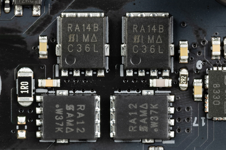 Ну и две фазы образованы уже не сборками, а отдельными полевыми транзисторами Vishay с максимальным током 58А.
