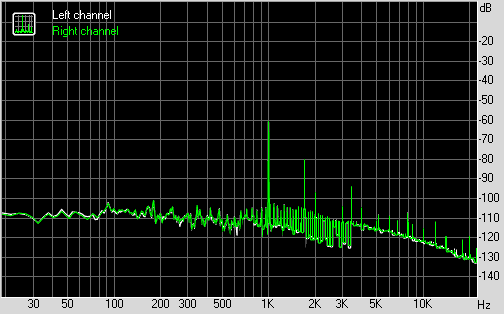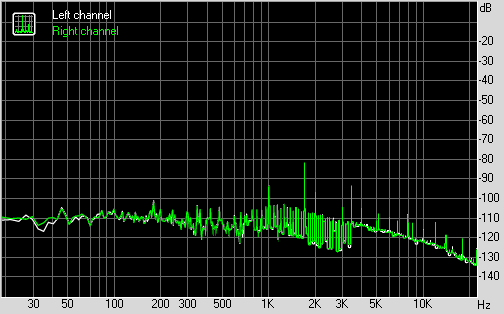 Для тестирования выходного звукового тракта, предназначенного для подключения наушников или внешней акустики, мы использовали внешнюю звуковую карту Creative E-MU 0204 USB в сочетании с утилитой RightMark Audio Analyzer 6.3.0. Тестирование проводилось для режима стерео, 24-бит/44,1 кГц. По результатам тестирования аудиотракт на плате Asus TUF H370-Pro Gaming получил оценку «Хорошо».