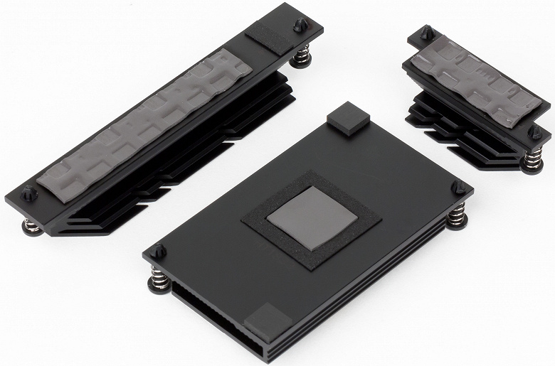 Система охлаждения платы состоит всего из трех небольших радиаторов. Два расположены по двум смежным сторонам процессорного разъема и предназначены для отвода тепла от элементов регулятора напряжения питания процессора. Еще один — делает вид, что охлаждает чипсет.