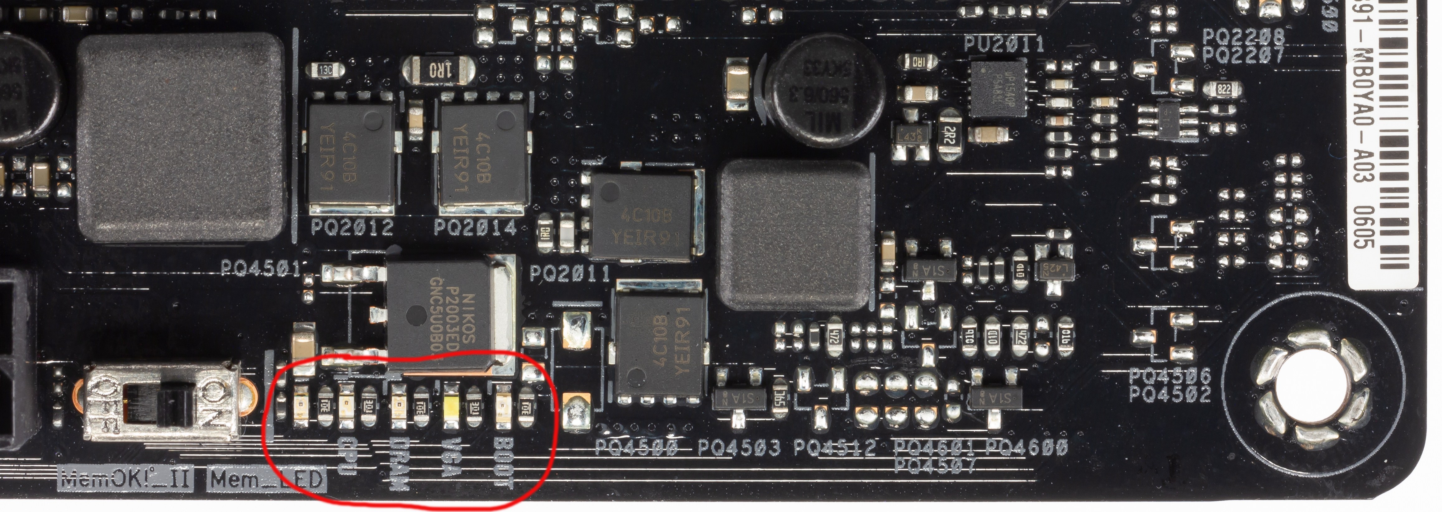 Принцип действия прост: тот или иной светодиод загорается при инициализации, затем в случае успешного теста он гаснет. То есть, если все 4 светодиода в процессе запуска/загрузки погасли, то все в порядке.