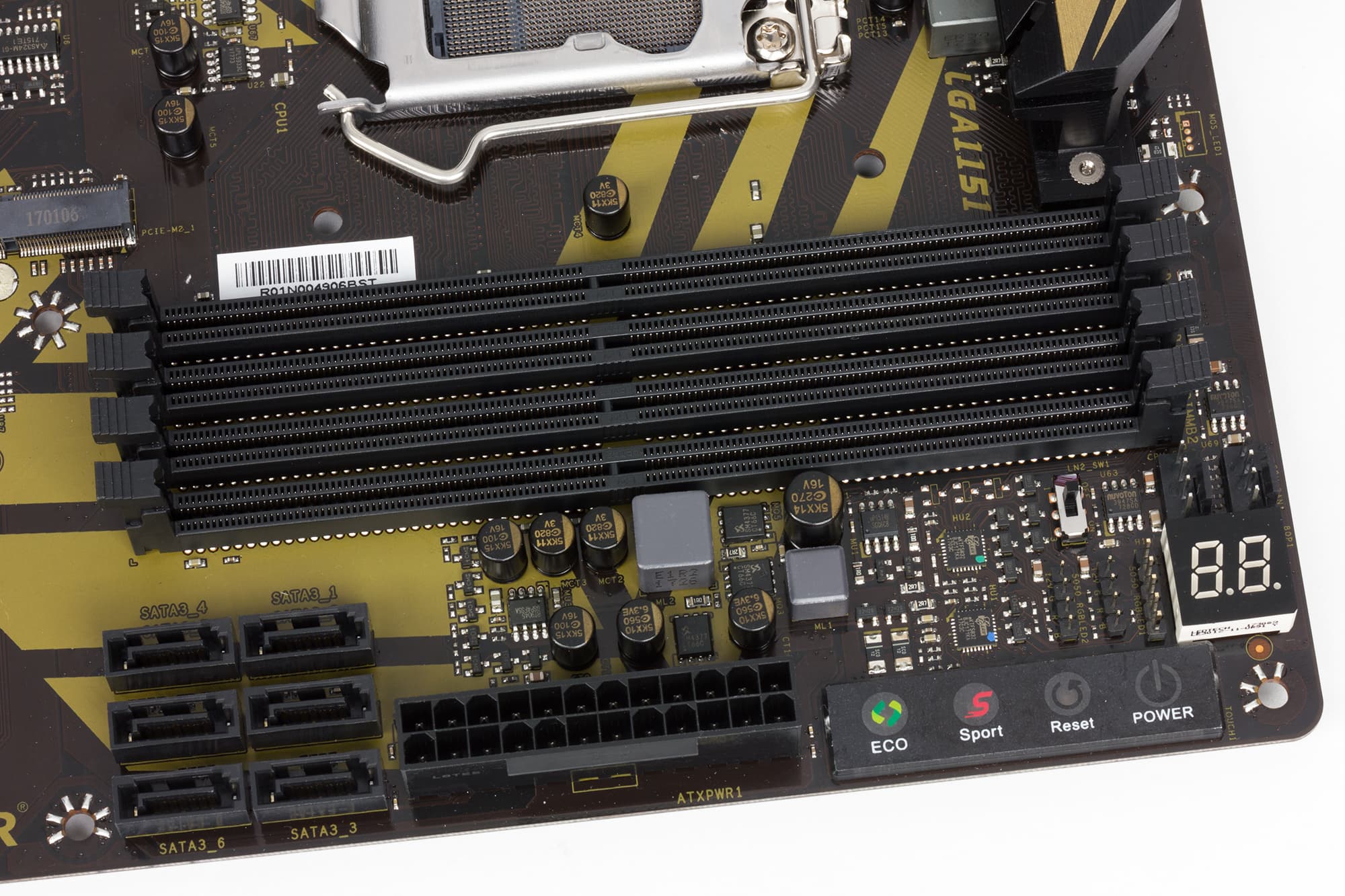 Пойдем дальше. На плате есть индикатор POST-кодов, который расположен рядом с панелью сенсорных кнопок.