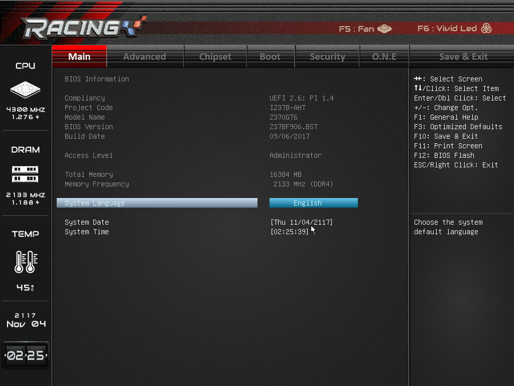 Если вы привыкли работать с UEFI BIOS Setup на платах Asus, ASRock, Gigabyte или MSI, то интерфейс UEFI BIOS Setup на плате Biostar Racing Z370GT6 покажется вам немного необычным.