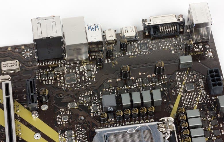 Поскольку процессоры Coffee Lake имеют интегрированное графическое ядро, для подключения монитора на задней панели платы имеются видеовыходы HDMI 1.4 и DVI-D.