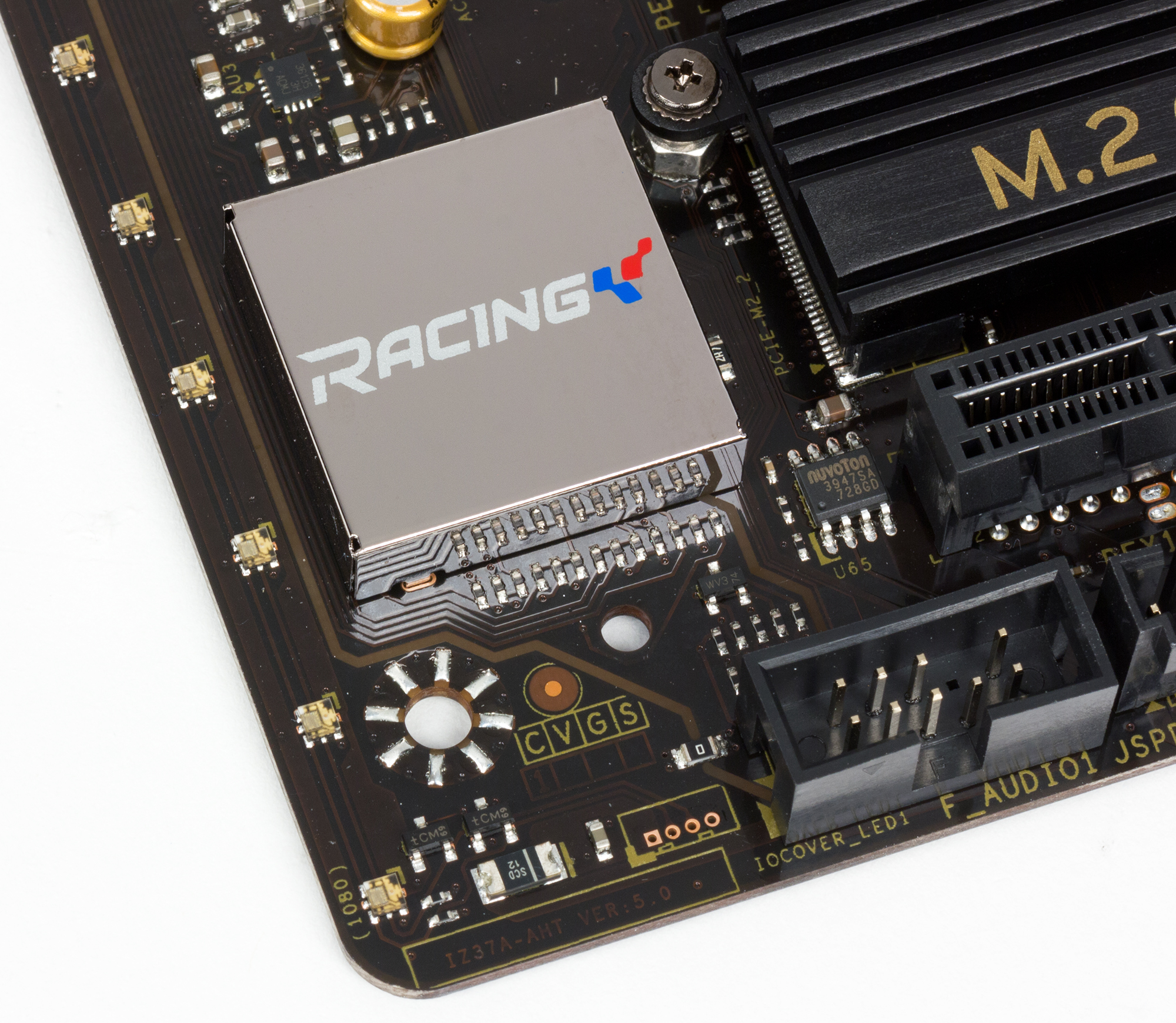 Аудиоподсистема платы Biostar Racing Z370GT6 основана на кодеке Realtek ALC1220 и изолирована на уровне слоев PCB от прочих компонентов платы и выделена в отдельную зону.