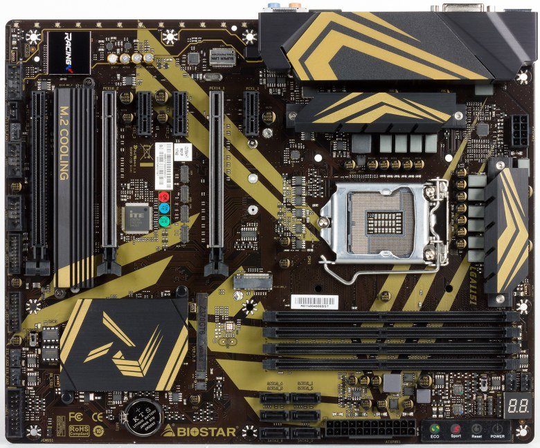 А теперь посмотрим, как все это реализовано в варианте платы Biostar Racing Z370GT6.