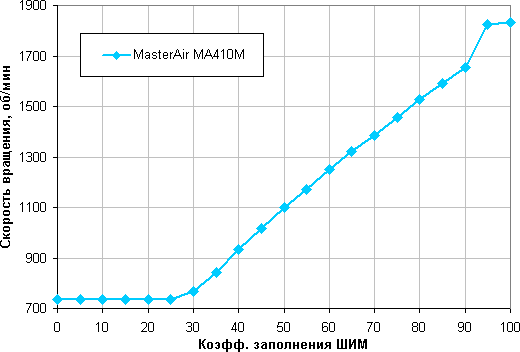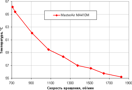 В этом тесте наш процессор с TDP 140 Вт не перегревается даже на минимальной скорости вращения вентилятора, достигаемой при регулировке с помощью только ШИМ.