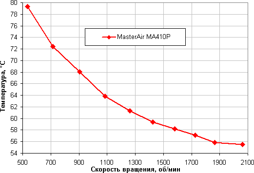 В этом тесте наш процессор с TDP 140 Вт не перегревается даже на минимальной скорости вращения вентилятора, достигаемой с помощью только ШИМ.
