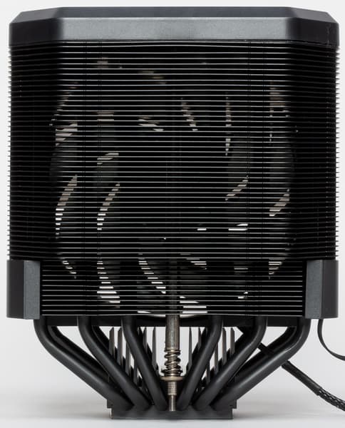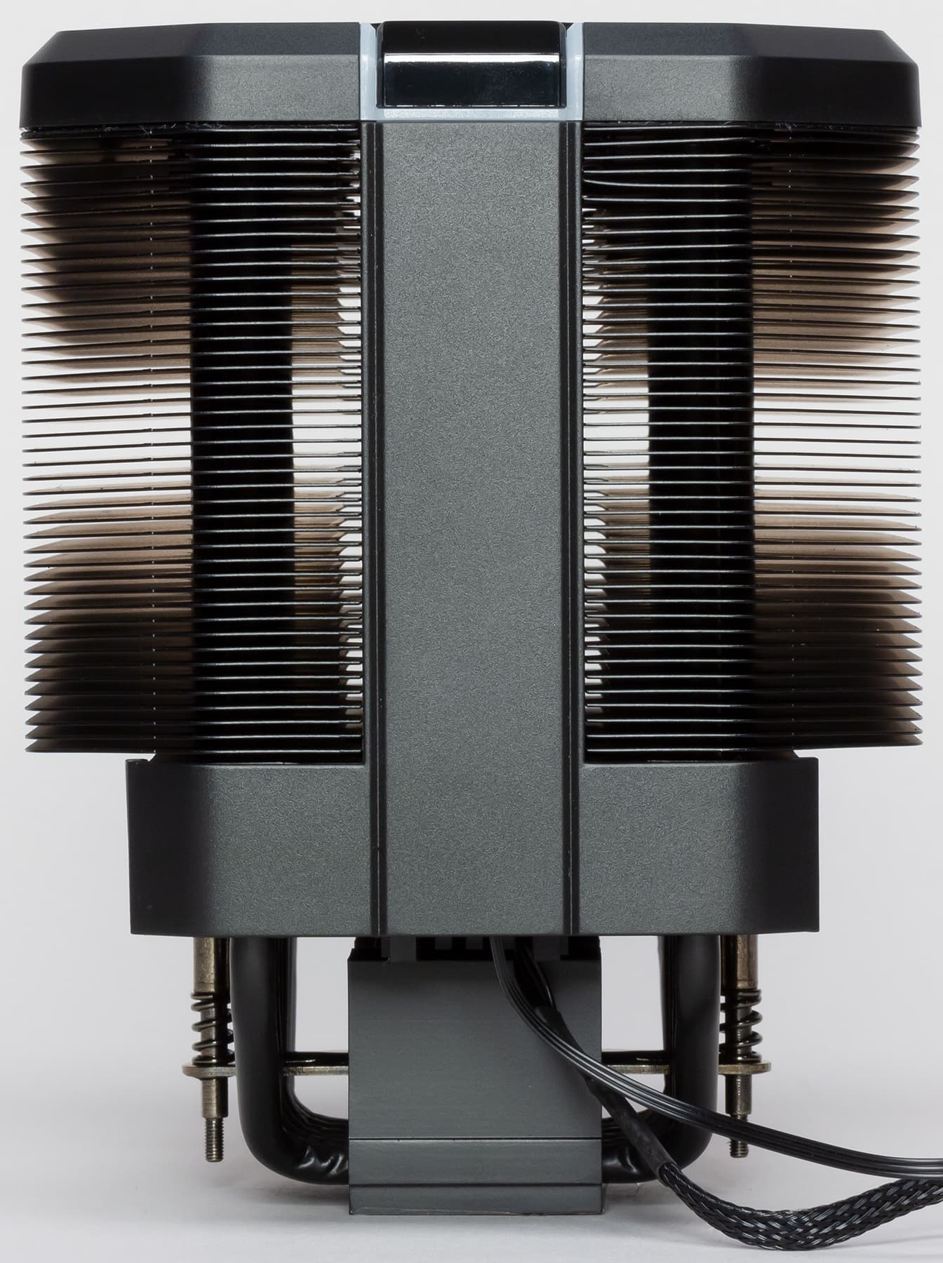 В данном кулере применяется один вентилятор типоразмера 120 мм, установленный между половинками радиатора.