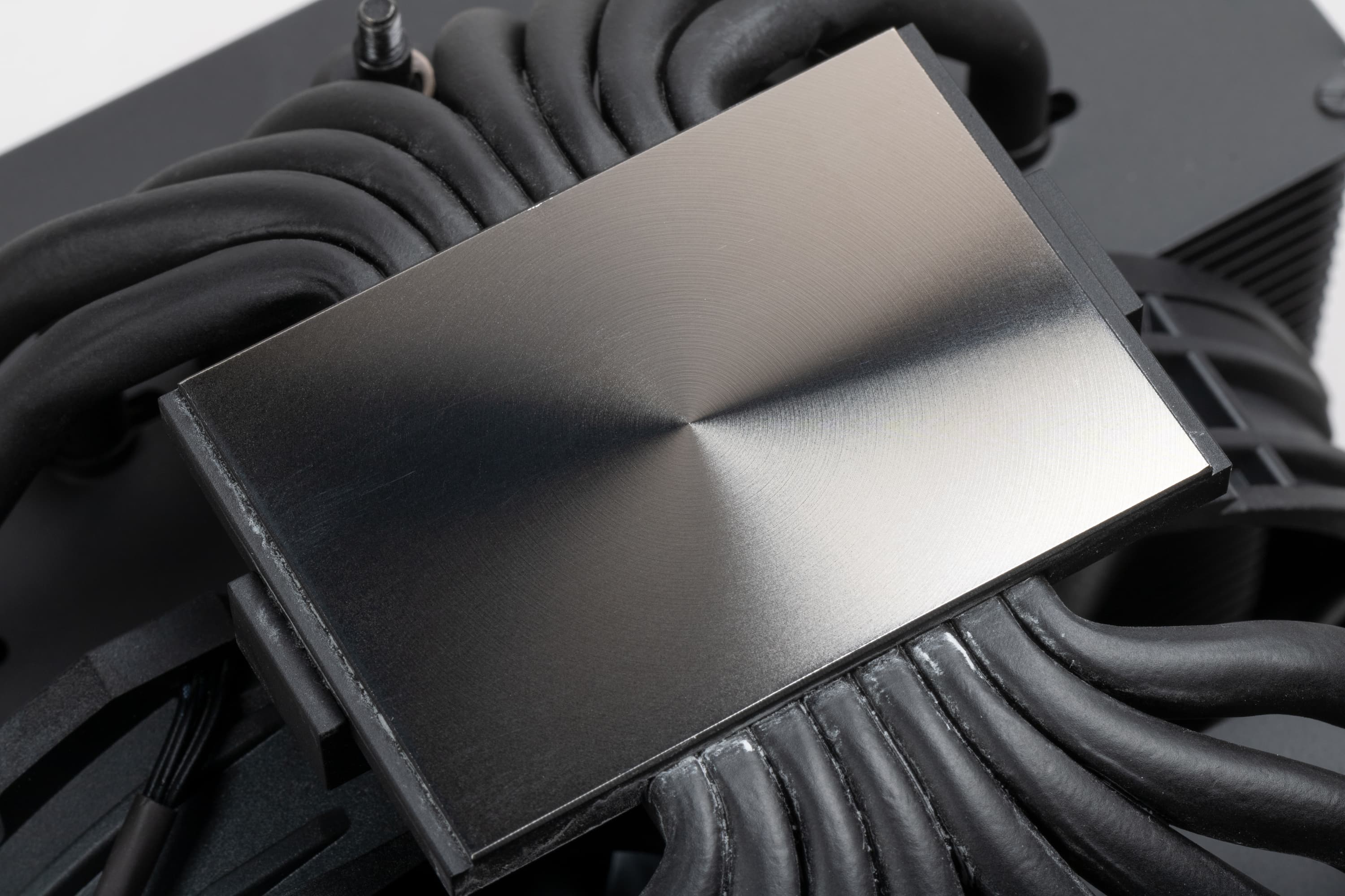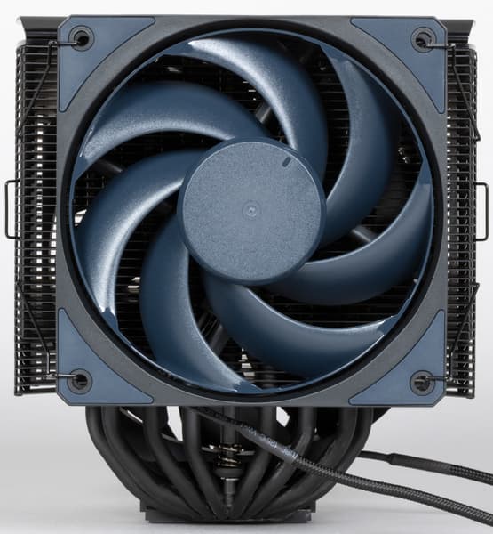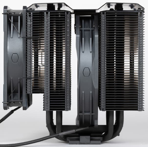 Кулер оснащен вынесенным двойным радиатором, к которому тепло от теплосъемника передается по восьми тепловым трубкам диаметром 6 мм. Трубки и нижняя часть теплосъемника медные. Трубки, нерабочая поверхность теплосъемника, пластины радиатора имеют черное матовое лакокрасочное покрытие. Верхняя часть теплосъемника изготовлена, по всей видимости, из алюминиевого сплава. Трубки к теплосъемнику припаяны. Подошва теплосъемника имеет очень мелкую концентрическую проточку и слегка отполирована. Поверхность подошвы немного выпуклая к центру с перепадом порядка 0,2 мм.