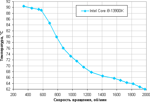 По факту в условиях теста этот процессор при 24 градусах окружающего воздуха перегревается при КЗ равном 30% (а это примерно 580 об/мин у 120 мм и 435 об/мин у 135 мм), так как некоторые ядра нагреваются до критической для этого процессора температуры в 100 °C.