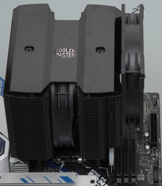 Однако на радиаторе часть пластин имеют уменьшенную глубину, а внешний вентилятор можно сместить вверх, что, согласно нашим измерениям, позволит использовать модули памяти высотой до 66 мм. Если не поднимать вентилятор выше радиатора — до 47 мм. Размеры, указанные производителем: