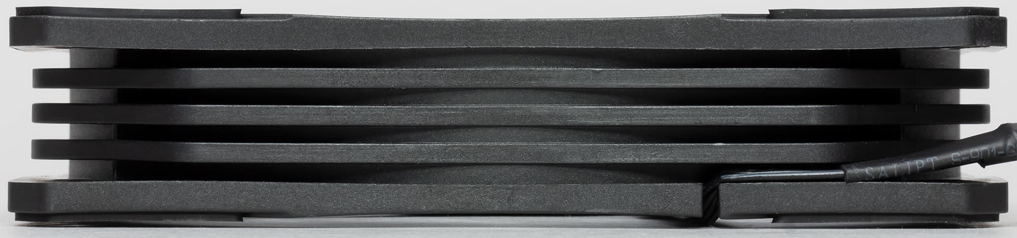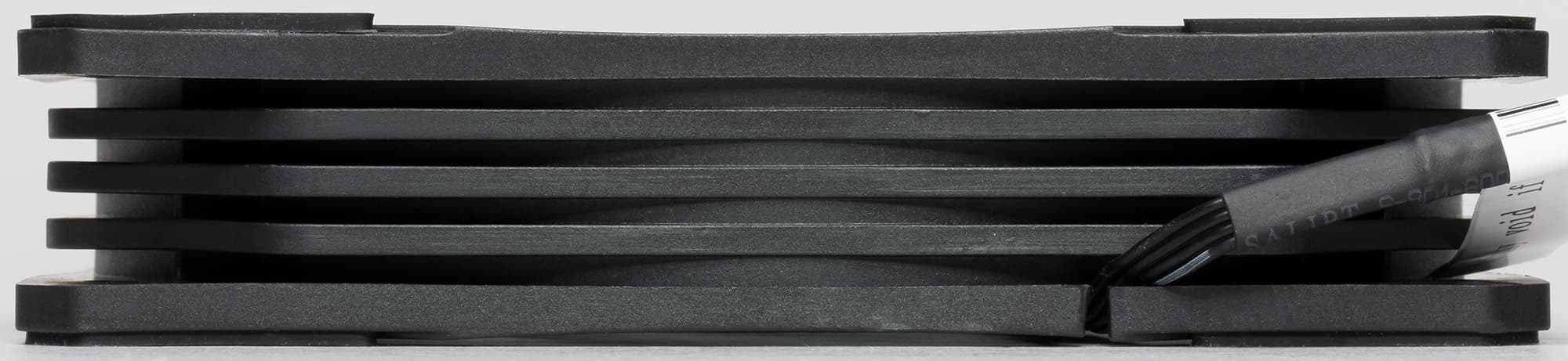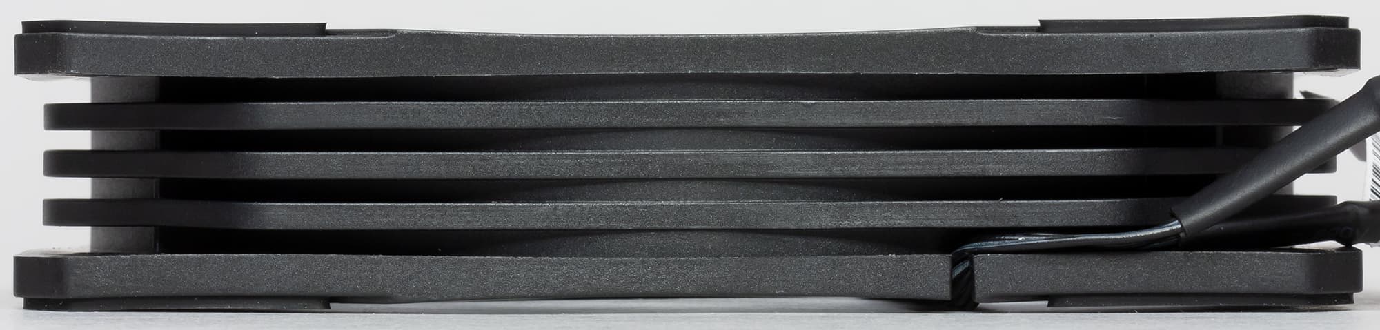 Рамка вентилятора изготовлена из черного прочного пластика. На ней есть ребра жесткости, что исключает возможные резонансные явления, которые могут привести к вибрации и увеличению шума при работе вентилятора. С менее жестки рамками такое возможно и уже нами встречалось.