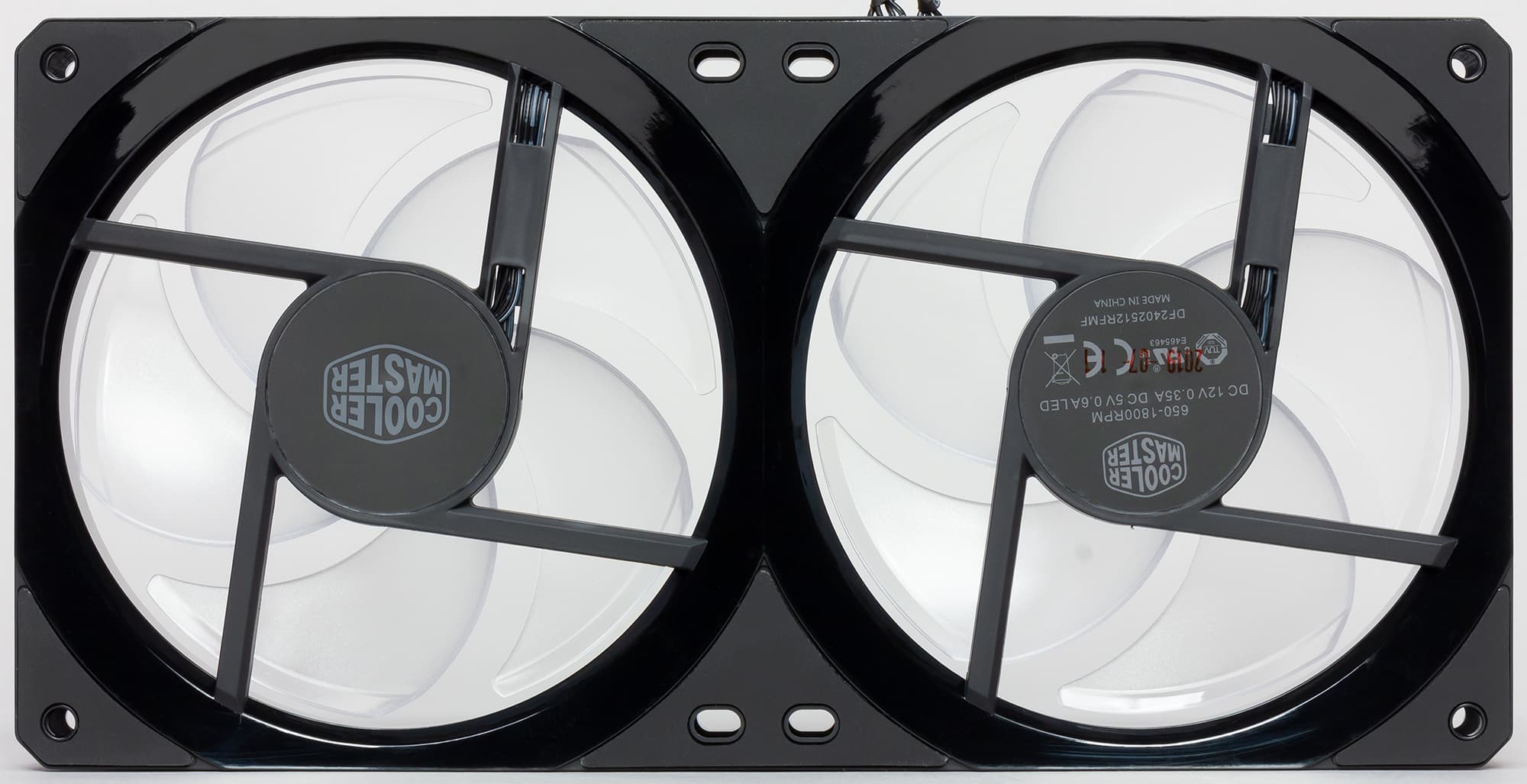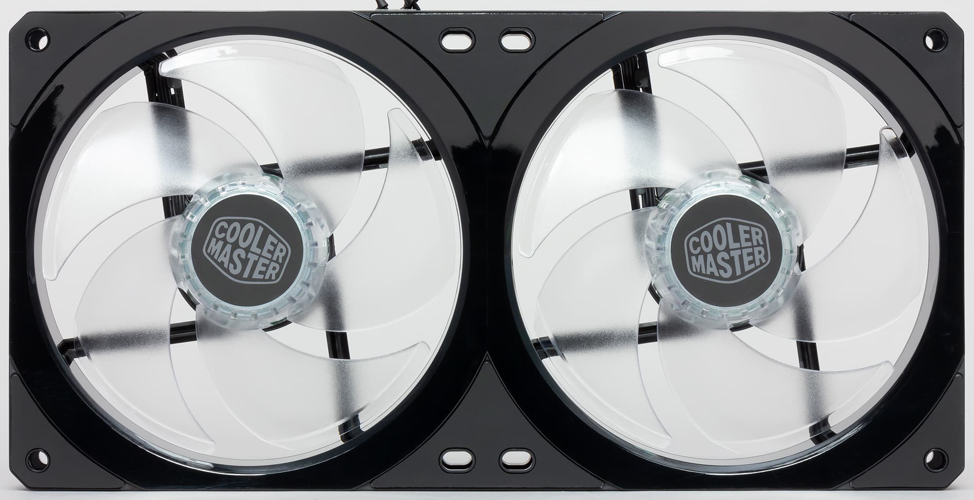 Крыльчатки этого сдвоенного вентилятора изготовлены из прозрачного пластика с частично заматированной поверхностью.