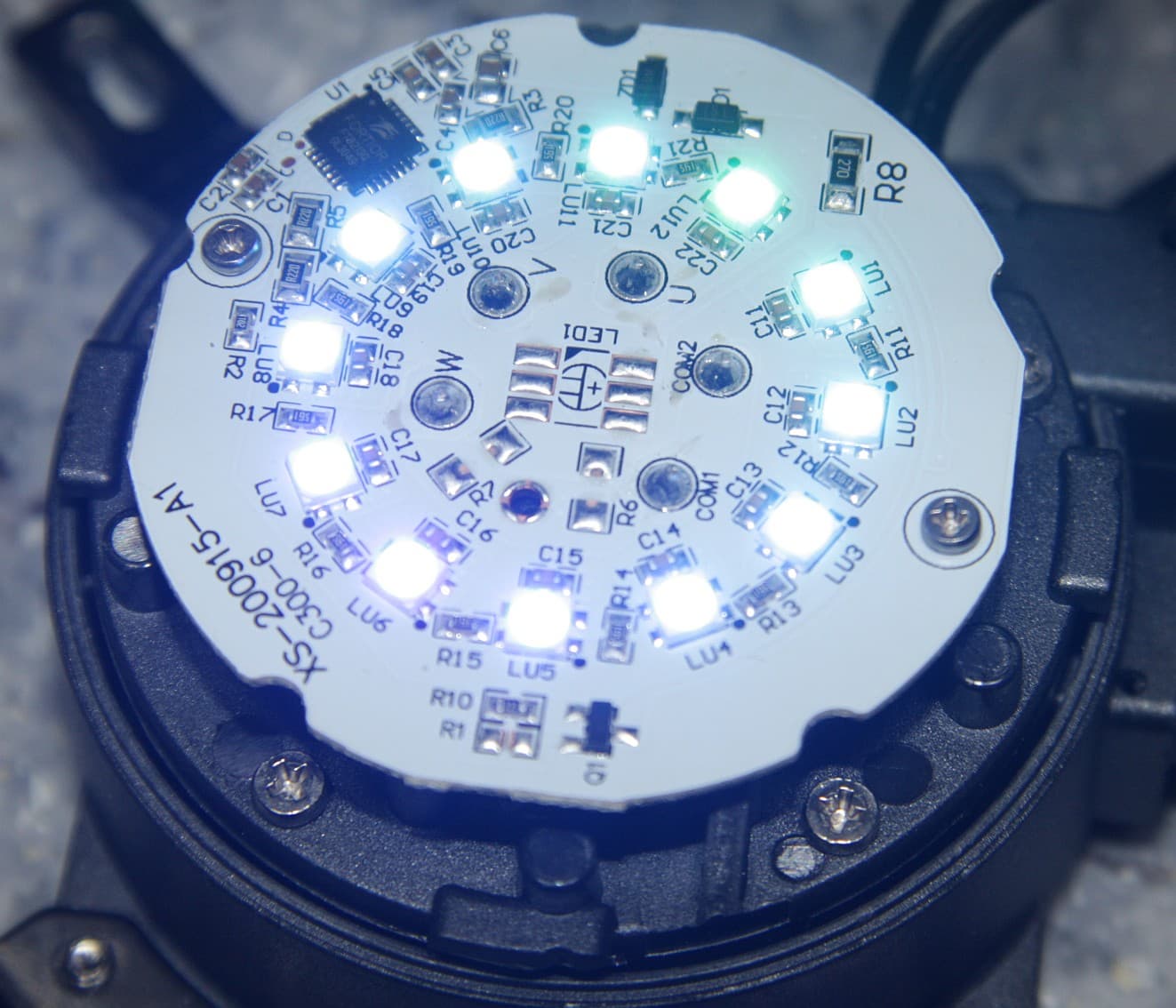 Диск можно без ограничений вращать относительно его центра, что позволяет выставить логотип в правильную ориентацию. Под крышкой помпы по кругу расположены 12 адресуемых RGB-светодиодов.