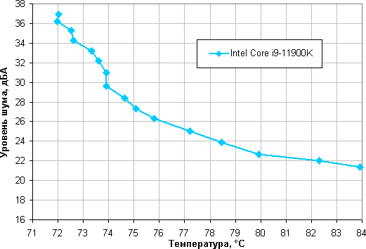 В качестве еще одного дополнительного теста мы решили посмотреть, как данная СЖО справится с охлаждением процессора Intel Core i9-11900K. Все ядра процессора работали на частоте 4,8 ГГц. В качестве нагрузочного теста применялась программа powerMax (с использованием системы команд AVX).