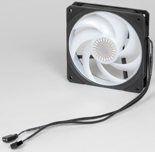 Лопасти крыльчатки заключены в кольцо, что может повышать эффективность вентилятора. Крыльчатка вентилятора изготовлена из белого полупрозрачного пластика. На статоре вентилятора по окружности размещены восемь ARGB-светодиодов, которые подсвечивают крыльчатку изнутри.