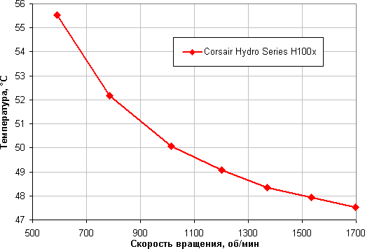 В этом тесте наш процессор с TDP 140 Вт не перегревается даже на минимальных оборотах вентиляторов в случае регулировки с помощью только ШИМ.