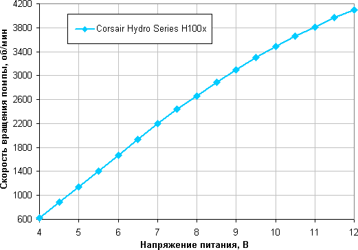Приведем также зависимость скорости вращения помпы от величины напряжения: