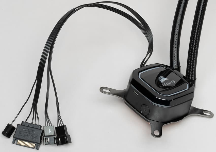 Управлять скоростью вращения помпы не из приложения iCue, изменяя напряжение питания, относительно трудно, так как, по всей видимости, помпа нормально работает только при питании от разъема SATA, в котором есть все три напряжения (12, 5 и 3,3 В).