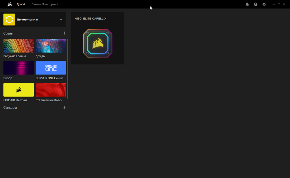 Если контроллер подключить только к источнику питания, то подсветка вентиляторов будет работать в режиме по умолчанию. Для управления работой системы охлаждения, а именно работой вентиляторов, помпы и подсветки, на ПК нужно установить фирменное ПО iCUE. Пройдемся по тем функциям, которые имеют непосредственное отношение к рассматриваемой системе охлаждения. Для доступа к ним нужно выбрать систему в главном окне.