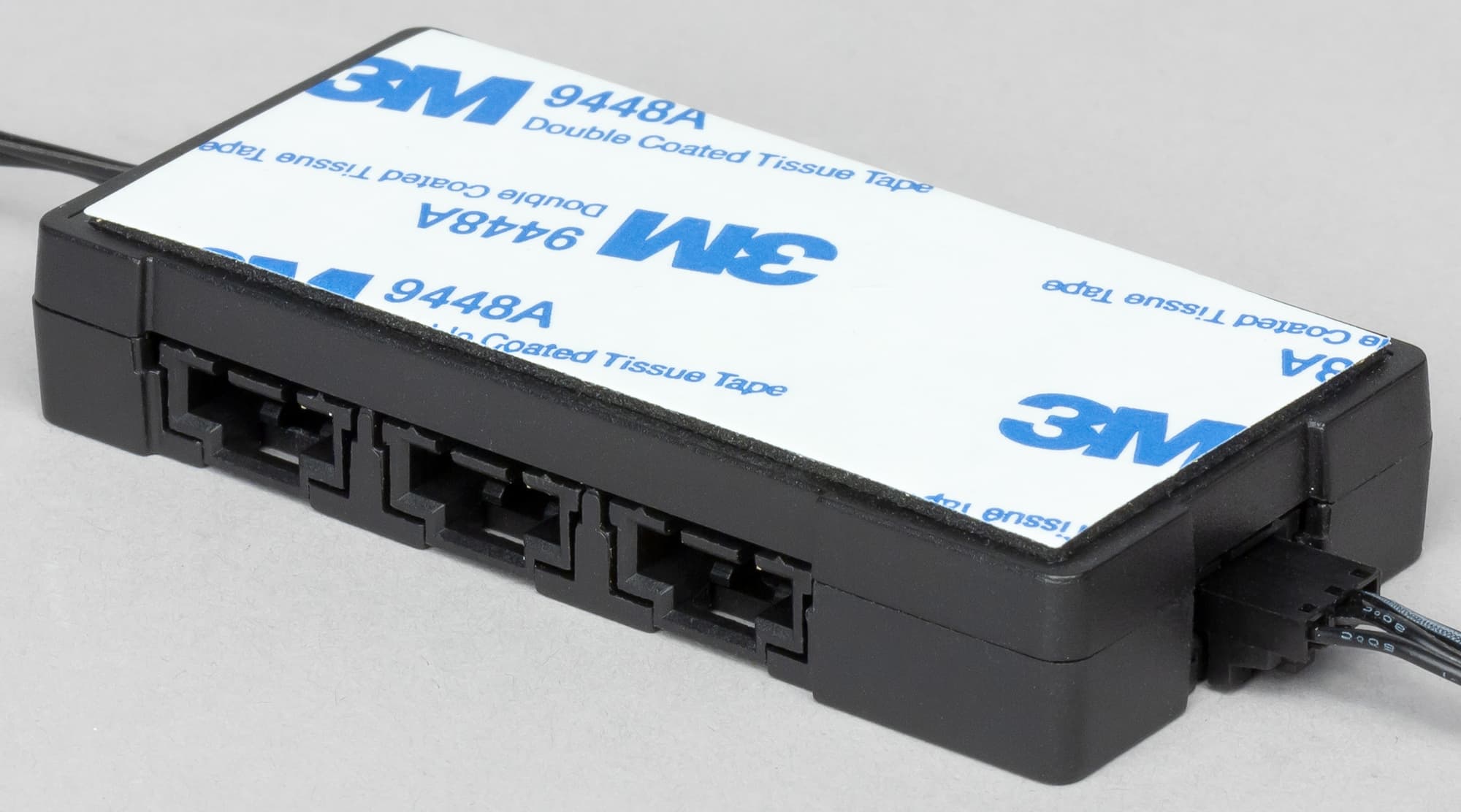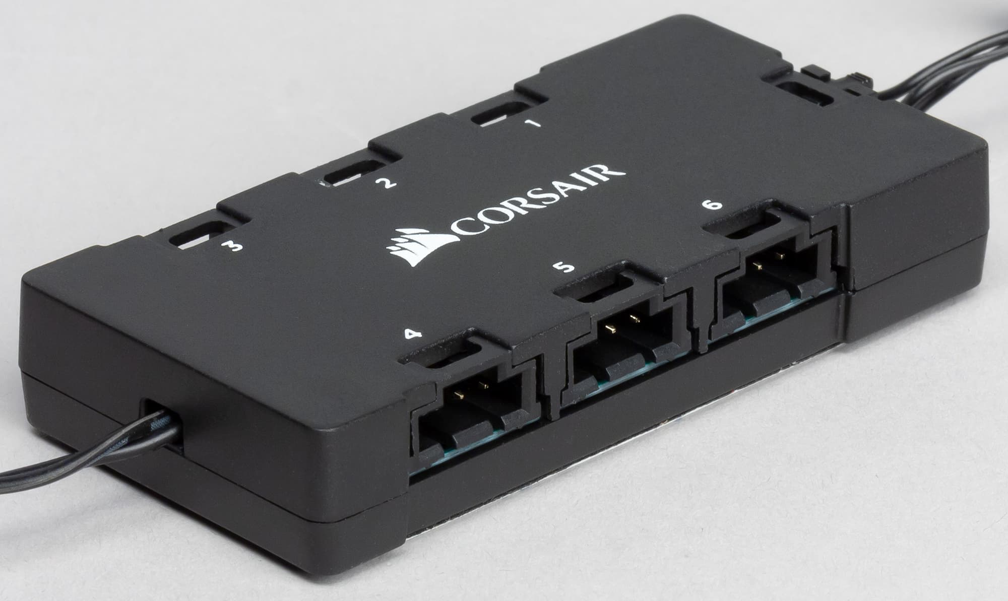 От каждого вентилятора отходит два кабеля, один с трех-, второй с четырехконтактным разъемом. Первым кабелем вентиляторы подключаются, например, к стандартным 3(4)-штырьковым разъемам на материнской плате. Вторым кабелем вентиляторы подключаются к контроллеру, отвечающему за функционирование подсветки. На нижней плоскости контроллера есть площадка с клейким слоем, предназначенная для закрепления контроллера внутри корпуса.